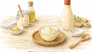 マヨネーズは、卵と油、酢を合わせて作られるシンプルな調味料です。コクのあるまろやかな味わいで、サラダやおにぎり、パンなどさまざまな料理に使われています。少量でも味に深みが生まれ、食事をやさしくまとめてくれる存在です。日常の食卓でもなじみやす...