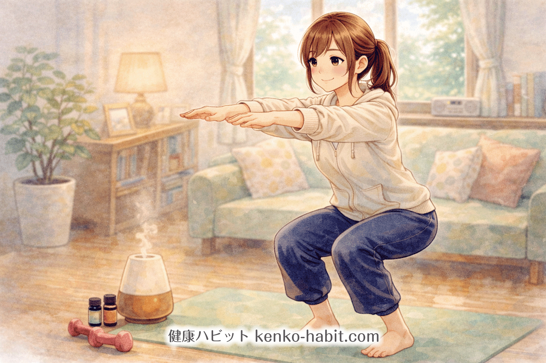 スクワットは、その場でできるシンプルな動きです。